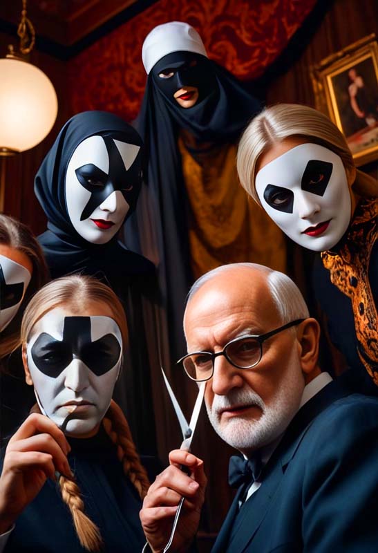 Ein weiteres satirisches Highlight ist die geplante "posthume Entmannung" von Sigmund Freud aufgrund seiner Theorien zur Hysterie. Diese groteske Aktion unterstreicht die Absurdität von Übertreibungen und Fehlinterpretationen feministischer Theorien und die Bereitschaft einiger Gruppen, historische Persönlichkeiten symbolisch zu bestrafen.