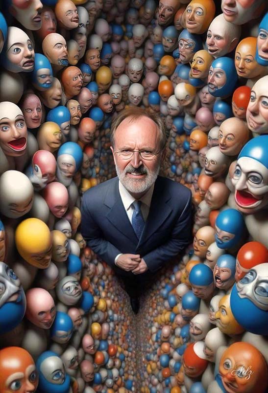 Und die ganz Weggetretenen gehen zum "Königsball" des Anglervereins. - "Guck mal, ein Bilderknipser", sagt doch da, angesichts eines mit einer Kamera bewaffneten Menschens, der Fisch mit der Maske zu seiner Elefantenkuh. Weiß der Glubscher nicht, dass der Knipser ihn und sein Monster wegknipsen könnte, noch bevor die gichtigen Gelenke auch nur einmal abwehrend gezuckt haben? - Aber ho, ho, hooh: Natürlich sollen auch die Unsäglichen ihre Existenzberechtigung haben und keine Repressionen fürchten müssen.